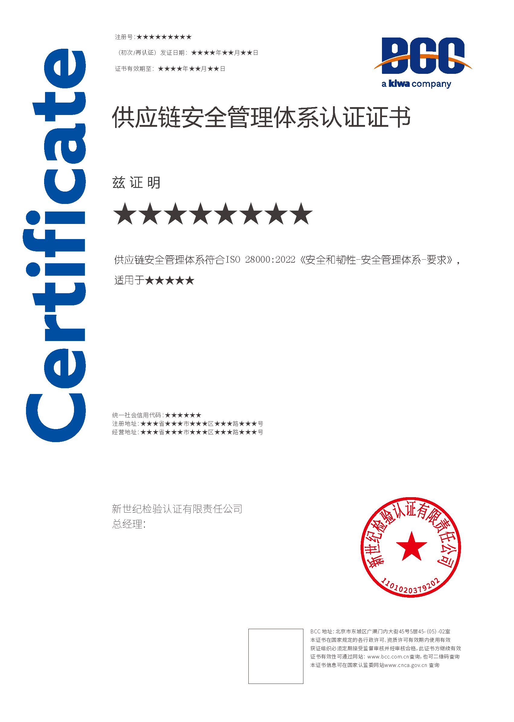 本頁涉及的認(rèn)證服務(wù)中均有對應(yīng)的《認(rèn)證實(shí)施規(guī)則》,BCC擁有其最終解釋權(quán)。任何組織及個人未經(jīng)BCC許可,不得以任何形式全部或部分使用(法律要求除外)認(rèn)證相關(guān)信息。如需獲取相關(guān)實(shí)施規(guī)則請用以下方式聯(lián)系獲?。弘娫挘?10-58579316 郵箱:fwjs@kiwa.cn