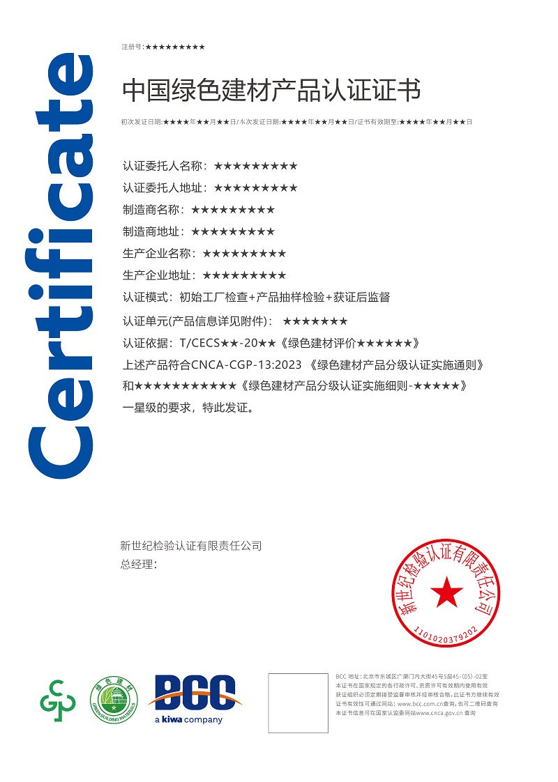 綠色建材產(chǎn)品分級認(rèn)證按照中國工程建設(shè)標(biāo)準(zhǔn)化協(xié)會發(fā)布的《綠色建材評價標(biāo)準(zhǔn)的要求》,將認(rèn)證結(jié)果由低至高分為一星級、二星級和三星級。