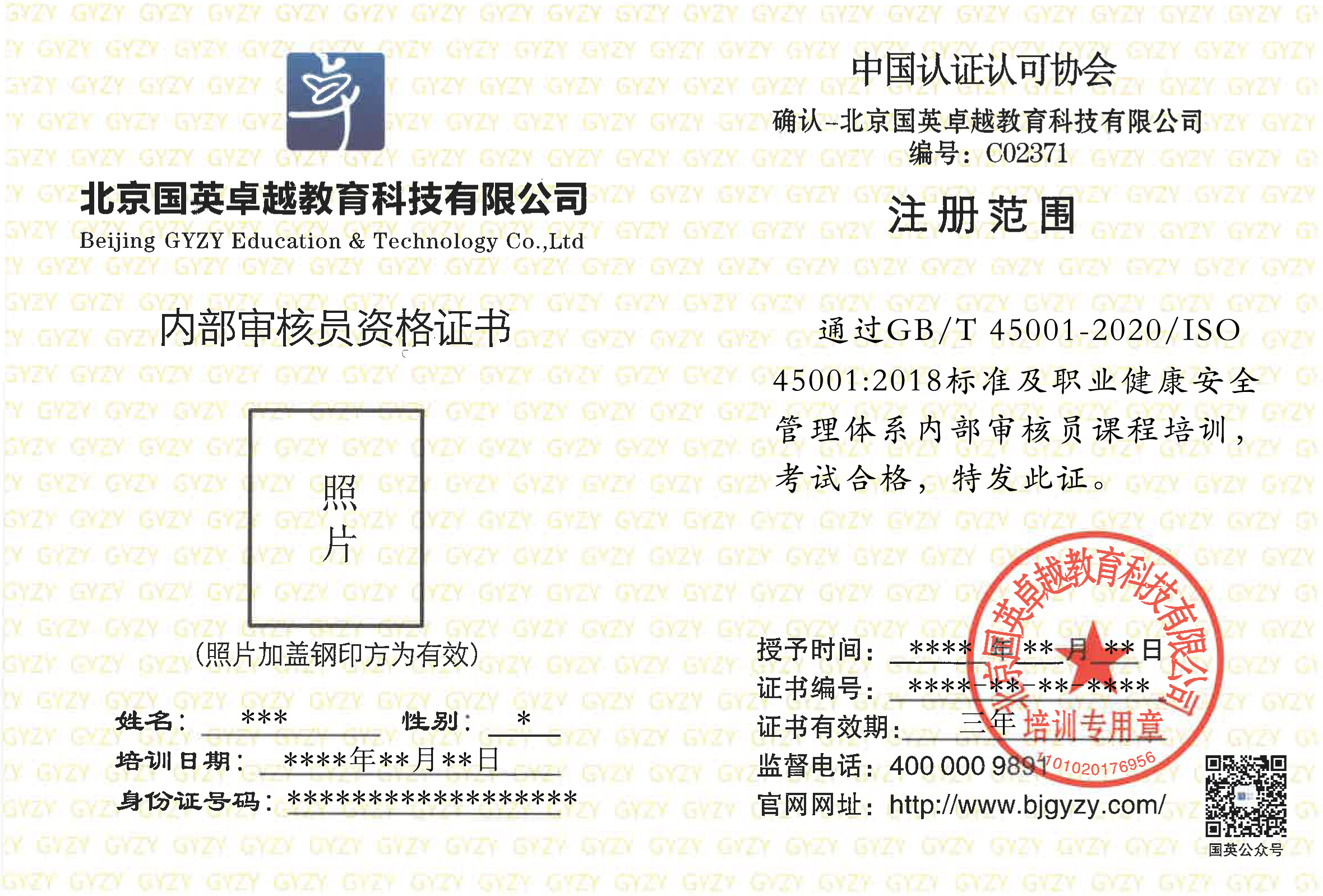 國家注冊(cè)質(zhì)量管理體系高級(jí)審核員、環(huán)境管理體系高級(jí)審核員、職業(yè)健康安全管理體系高級(jí)審核員、國家清潔生產(chǎn)審核師、環(huán)保工程師【詳細(xì)】 -