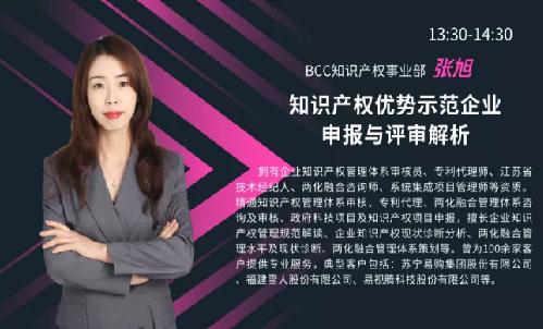 活動在BCC知識產(chǎn)權(quán)事業(yè)部總經(jīng)理侯璐瑤的精彩介紹中拉開帷幕。半個小時的活動預熱環(huán)節(jié)中,侯璐瑤對BCC的各項業(yè)務以及本次活動的講師進行了簡短的介紹,并宣傳了疫情期間推出的認證費用減免政策,表達了我們對依托自身專業(yè)服務能力,為客戶進行知識產(chǎn)權(quán)管理帶來更大的幫助的信心。