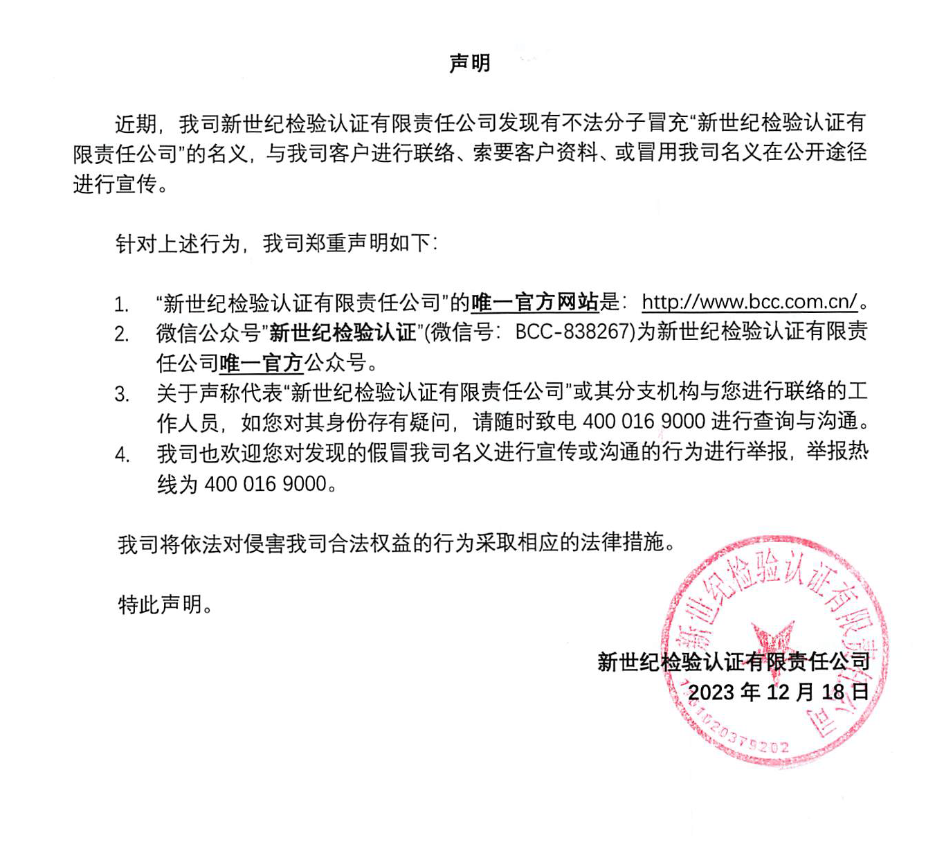 新世紀(jì)檢驗(yàn)認(rèn)證有限責(zé)任公司