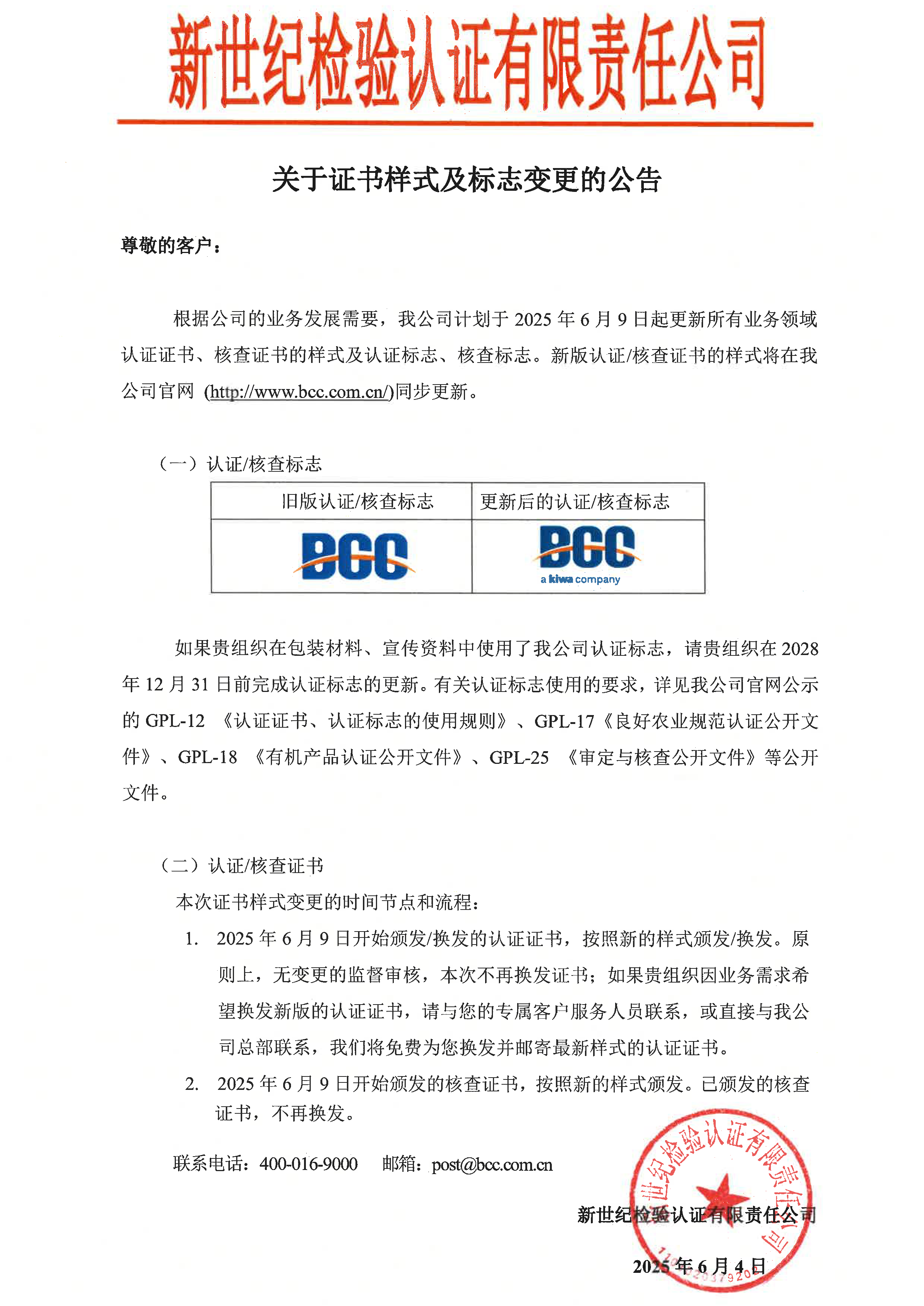 關于證書樣式及標志變更的公告